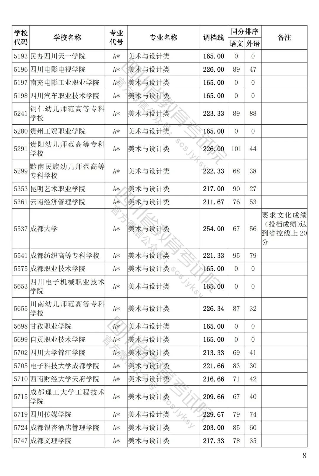 四川省2022年普通高等學(xué)校藝術(shù)體育類??婆延?月5日投檔錄取。為方便廣大考生和家長及時了解錄取信息,省教育考試院按非編導(dǎo)類和編導(dǎo)類發(fā)布了藝體類分校、分專業(yè)類調(diào)檔線。