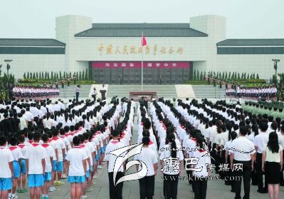 盧溝橋畔,坐落在這里的中國人民抗日戰(zhàn)爭紀(jì)念館雄偉莊嚴(yán)。紀(jì)念館前廣場上,鮮艷的五星紅旗高高飄揚。紀(jì)念館正門上方懸掛著“勿忘國恥 圓夢中華”的巨幅標(biāo)語。