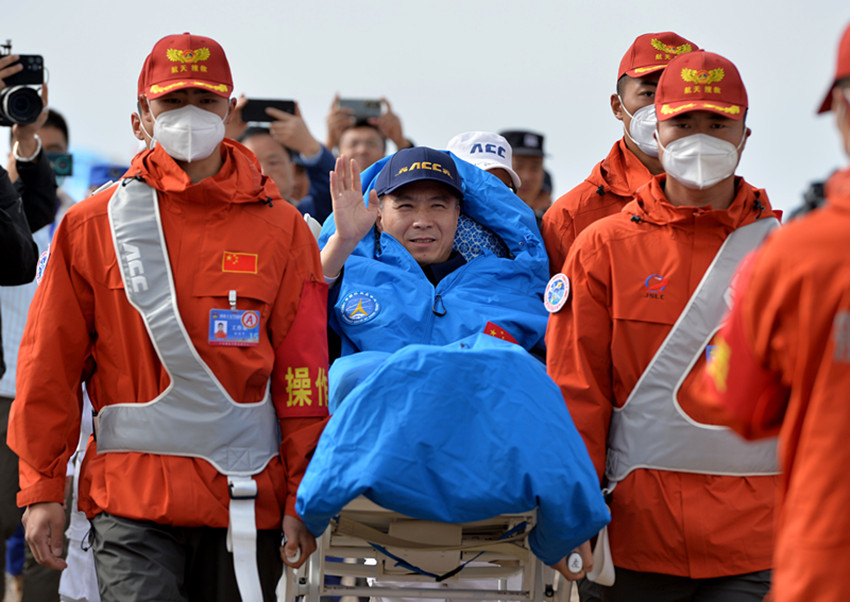 6月4日,神舟十五號(hào)載人飛船返回艙在東風(fēng)著陸場(chǎng)成功著陸,神舟十五號(hào)載人飛行任務(wù)取得圓滿成功。這是航天員費(fèi)俊龍揮手致意。 新華社 發(fā)
