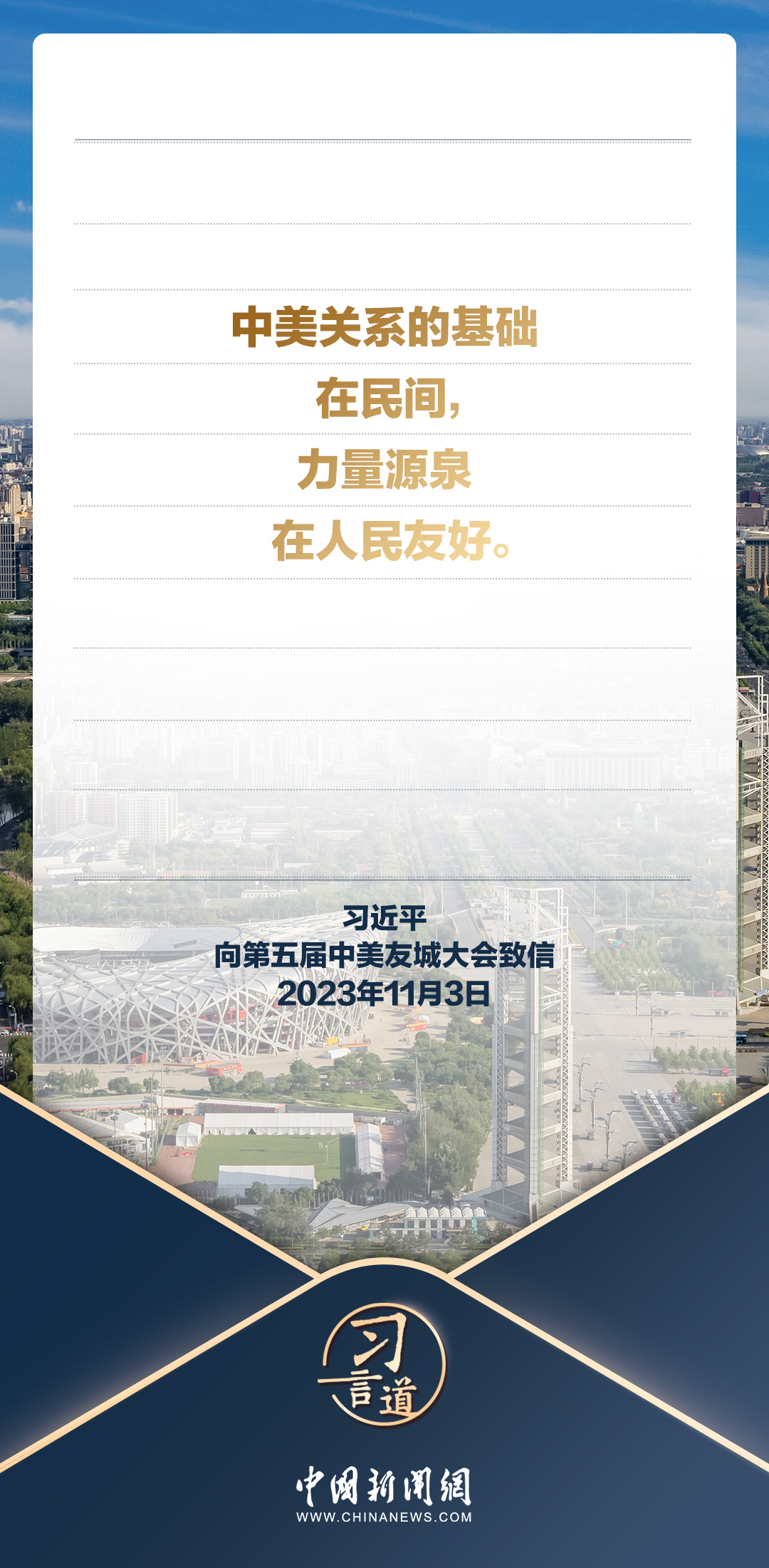 值得關(guān)注的是,本月習(xí)近平主席還有兩項(xiàng)與“中美關(guān)系”相關(guān)的日程安排——會見美國加州州長、向美中關(guān)系全國委員會年度頒獎晚宴致賀信。在這兩項(xiàng)日程安排中,習(xí)近平主席闡明了中美確立正確相處之道的重要性,會見紐森時,習(xí)近平主席還強(qiáng)調(diào)了發(fā)展好中美關(guān)系需要匯聚各方力量:“中美關(guān)系基礎(chǔ)在民間,希望在人民,未來在青年,活力在地方?!?/p>
