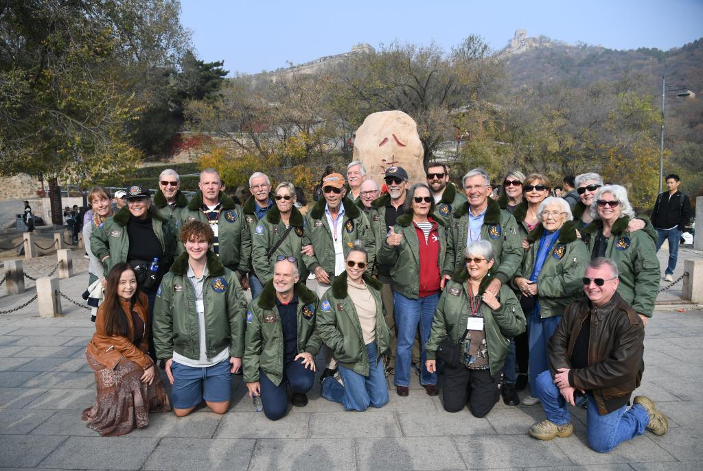 10月29日,飛虎隊老兵莫耶一行人在北京八達嶺長城合影留念。當日,美中航空遺產(chǎn)基金會訪華代表團成員陸續(xù)抵達北京。新華社記者任超攝