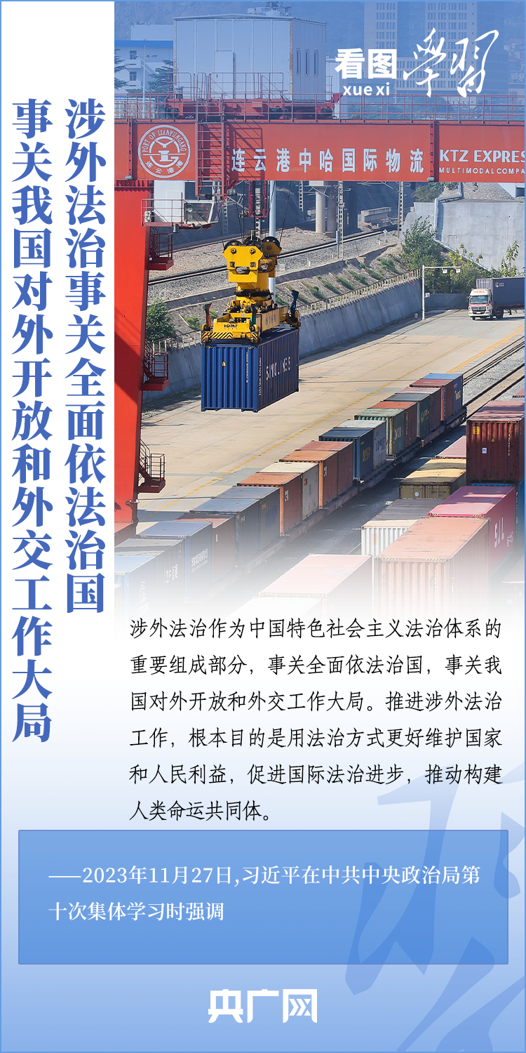 涉外法治作為中國特色社會主義法治體系的重要組成部分,事關(guān)全面依法治國,事關(guān)我國對外開放和外交工作大局。11月27日,中共中央政治局就加強涉外法制建設(shè)進行第十次集體學(xué)習(xí)。習(xí)近平總書記在主持學(xué)習(xí)時強調(diào),加強涉外法治建設(shè)既是以中國式現(xiàn)代化全面推進強國建設(shè)、民族復(fù)興偉業(yè)的長遠所需,也是推進高水平對外開放、應(yīng)對外部風(fēng)險挑戰(zhàn)的當(dāng)務(wù)之急。一起來學(xué)習(xí)!