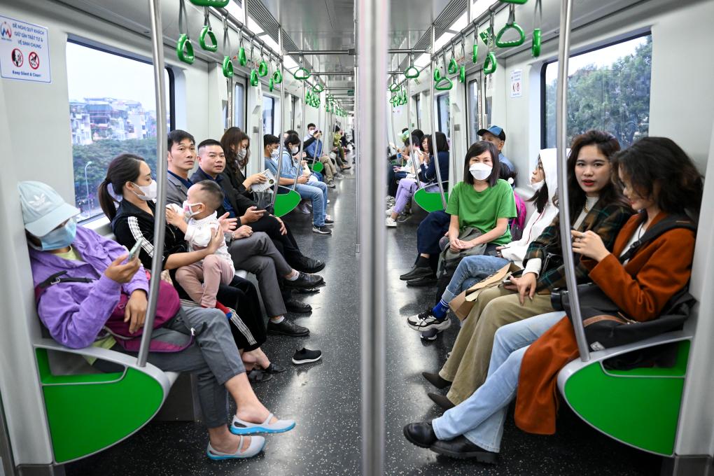 12月9日,人們在越南河內(nèi)乘坐吉靈-河?xùn)|線輕軌。河內(nèi)吉靈-河?xùn)|線輕軌由中國中鐵六局集團(tuán)有限公司承建,是中越兩國共建“一帶一路”的標(biāo)志性項目。新華社記者程一恒攝