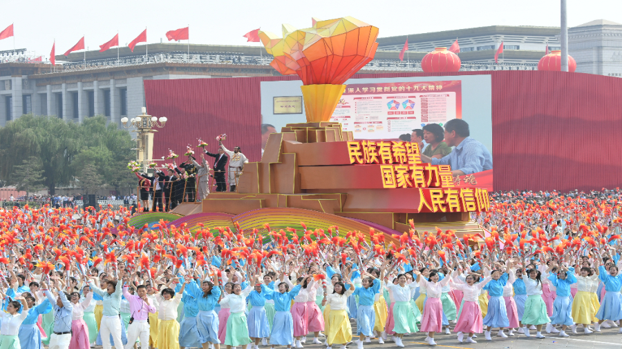 ??篇篇賀詞,團結(jié)是“大江南北披上紅色盛裝,人們臉上洋溢著自豪的笑容,《我和我的祖國》在大街小巷傳唱”;是“逆行出征的豪邁”“頑強不屈的堅守”“患難與共的擔當”“英勇無畏的犧牲”“守望相助的感動”;是“廣大軍民不畏艱險,同心協(xié)力抗洪救災”……