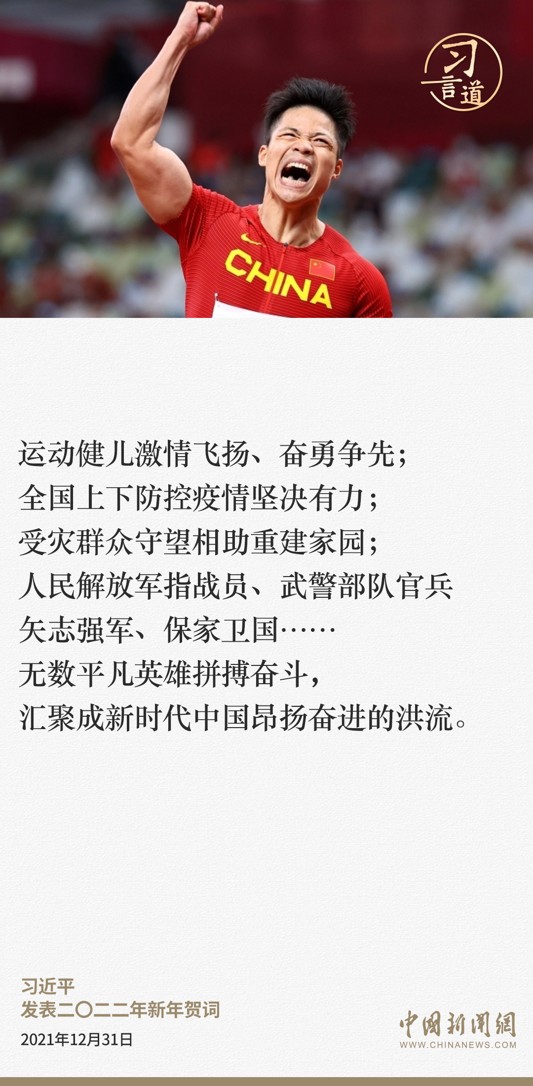 平凡鑄就偉大,英雄來自人民。自2013年歲末起,國家主席習(xí)近平連續(xù)10年發(fā)表新年賀詞。在新年賀詞中,習(xí)近平總會為奮斗的中國人點贊、加油鼓勁,勉勵大家“征途漫漫,惟有奮斗”。