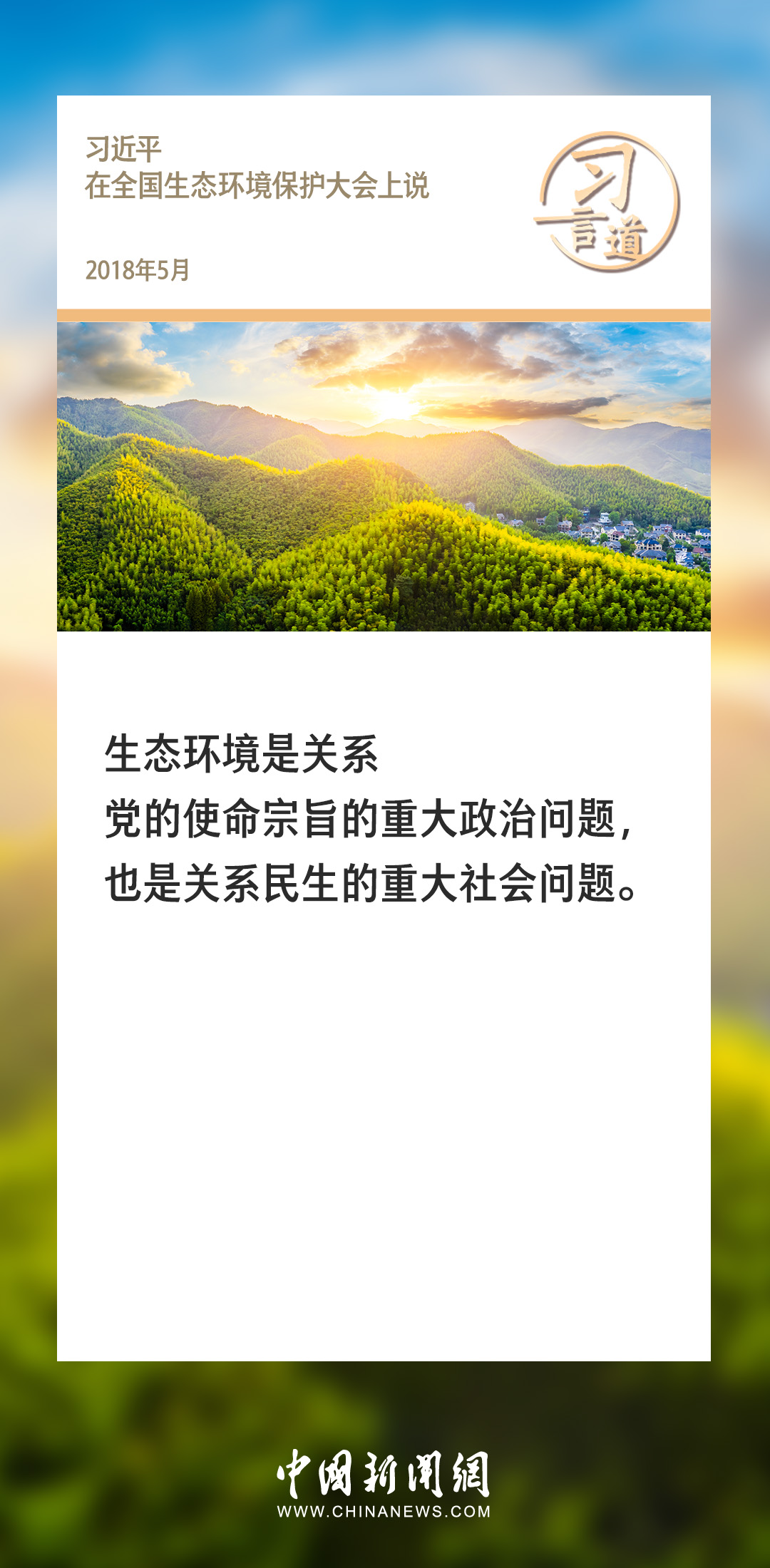 生態(tài)文明建設是關系中華民族永續(xù)發(fā)展的根本大計。黨的十八大以來,習近平總書記就生態(tài)文明建設發(fā)表過一系列重要論述,諸多“金句”深入人心。