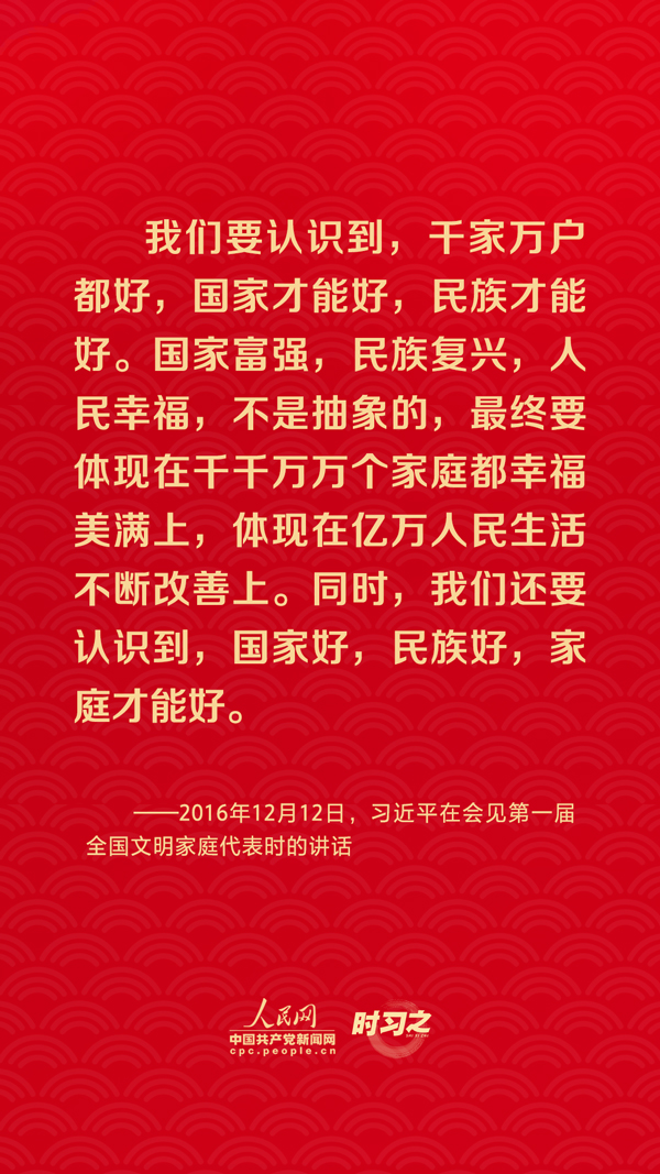 團(tuán)圓是春節(jié)永恒的主題?!皼]有國(guó)家繁榮發(fā)展,就沒有家庭幸福美滿。同樣,沒有千千萬(wàn)萬(wàn)家庭幸福美滿,就沒有國(guó)家繁榮發(fā)展?!绷?xí)近平總書記曾在多個(gè)場(chǎng)合深刻闡述家庭與國(guó)家之間的關(guān)系,從他的話語(yǔ)里一起感悟深厚的家國(guó)情懷。