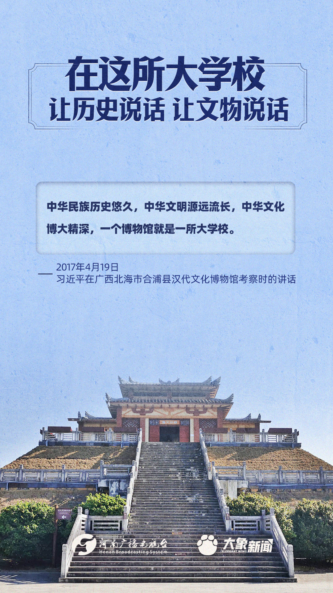 習(xí)近平總書記一直高度重視博物館工作,多次作出重要講話,強(qiáng)調(diào)“一個(gè)博物院就是一所大學(xué)?!?,指出“讓歷史說話,讓文物說話”,要求“守護(hù)好、傳承好、展示好中華文明優(yōu)秀成果”等等,金句連連。大象新聞進(jìn)行了認(rèn)真梳理,邀您一起學(xué)習(xí)。