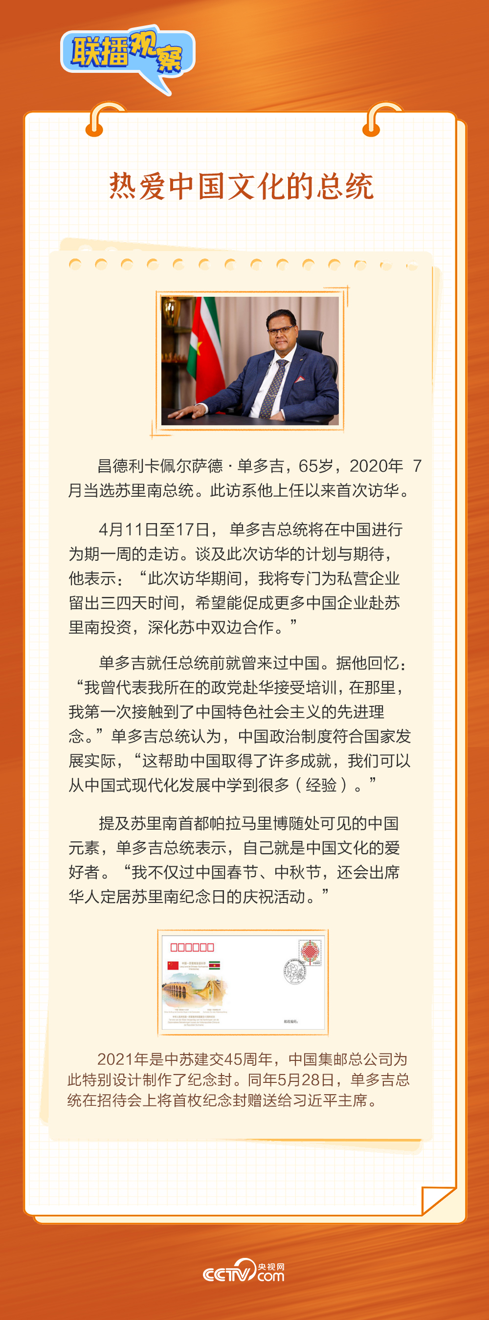 此訪是單多吉總統(tǒng)上任以來首次訪華,這次會(huì)談對(duì)兩國關(guān)系發(fā)展具有怎樣的重要意義?蘇里南又是怎樣的一個(gè)國度?《聯(lián)播觀察》邀您一同了解。