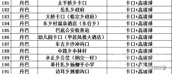 8鄉(xiāng)城轄區(qū)交通違法抓拍點位