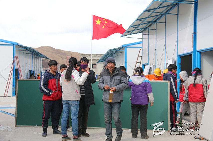 據(jù)現(xiàn)場來自雅致集成房屋有限公司的專業(yè)技術(shù)人員介紹,搭建一間板房,需要先支起框架,然后將面板和頂板逐步安裝。在高原極端天氣下,夜間建造板房難度可以說是非常之大。來自成都的專業(yè)技術(shù)人員們雖然經(jīng)驗(yàn)豐富,但也很少用到適合高原的特殊材質(zhì)材料,很多時候都需要研究好方案、對策才能動工,所以進(jìn)度有一點(diǎn)耽擱,否則的話一夜的時間里會有更多的板房呈現(xiàn)在孩子們的面前。