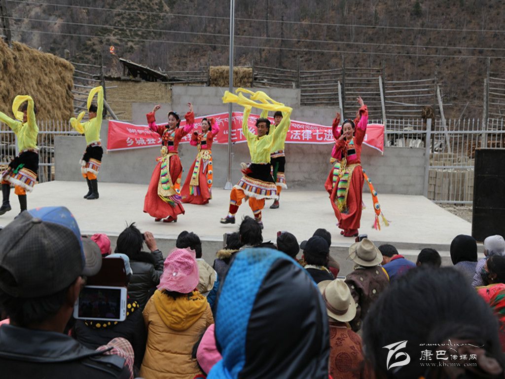 演出開始時,天空飄起了雪花,演員們表演的《再唱山歌給黨聽》、《香巴拉頌歌》、《吉祥頌》等群眾耳熟能詳?shù)母枨臀璧笢嘏巳罕姷男?,并贏得了如潮掌聲。