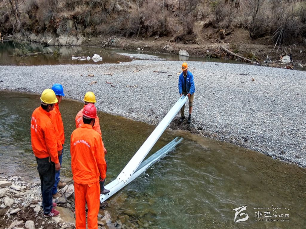 第一小組,由鄉(xiāng)城縣供電公司領(lǐng)導(dǎo)帶隊(duì),身先士卒,肩扛繩拉地搬運(yùn)電桿。