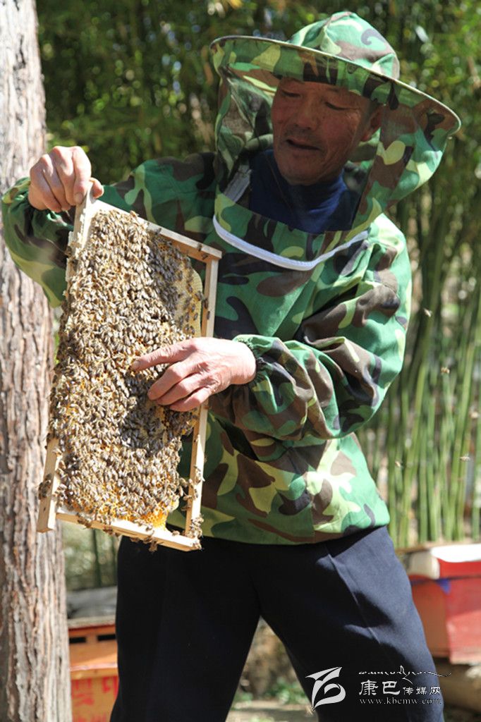 1974年,因?yàn)轲B(yǎng)蜂,高廷明成了割“尾巴”的對(duì)象,被連續(xù)批斗了好幾個(gè)晚上。但所有這些,都沒(méi)有阻擋他養(yǎng)蜂的喜好,反而激發(fā)了他發(fā)展壯大養(yǎng)蜂業(yè)的欲望。“我們這里有桃花、李花、金銀花、油菜花,山上還有成片的五倍子花,五倍子花粉成糖顏色最好,金銀花蜜則有藥用價(jià)值。養(yǎng)蜂講究‘三睛兩雨’,最好是晚上下雨,白天出太陽(yáng),這種天氣花粉最好,產(chǎn)糖高。由于人手不夠,我都采用小轉(zhuǎn)場(chǎng)放蜂,一般只轉(zhuǎn)場(chǎng)兩、三公里,走遠(yuǎn)了一個(gè)人不方便。采蜜時(shí)要把準(zhǔn)季節(jié),要不然會(huì)出現(xiàn)人與蜜蜂搶蜜的現(xiàn)象,說(shuō)不定還會(huì)被蜜蜂蟄傷。”在院子后面的一片樹(shù)林里,高廷明一邊分蜂一邊對(duì)記者說(shuō)。他還告訴記者,雖然自己天天與蜜蜂打交道,這些有靈性的小家伙似乎已經(jīng)習(xí)慣主人的氣味,但自己還是被蜜蜂蟄傷過(guò)。每次被蜜蜂蟄傷時(shí),家里的碘酒就派上了用場(chǎng)。