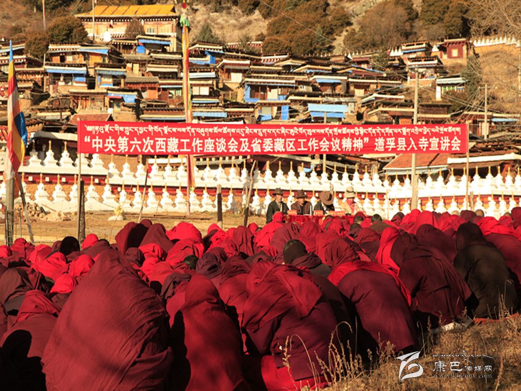本網(wǎng)訊(記者 袁飛 文/圖)為有效引導(dǎo)僧尼增強(qiáng)國(guó)家意識(shí)、公民意識(shí)、法制意識(shí)和民族團(tuán)結(jié)意識(shí),增強(qiáng)對(duì)偉大祖國(guó)、中華民族、中華文化、社會(huì)主義道路的認(rèn)同感,11月13日至15日,按照省、州委統(tǒng)一安排部署,道孚縣“中央第六次西藏工作座談會(huì)及省委藏區(qū)工作會(huì)議精神”寺廟集中宣講活動(dòng)在靈雀寺、菜子坡覺姆寺、銅佛山覺姆寺舉行,761名僧尼到場(chǎng)聆聽了宣講。這標(biāo)志著道孚縣寺廟集中宣講活動(dòng)進(jìn)入一個(gè)新的階段。