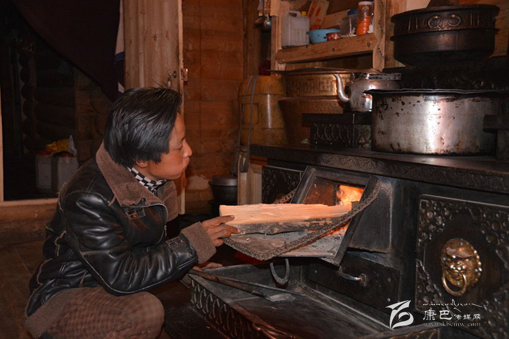 擁珠色巴正在生火做飯。
