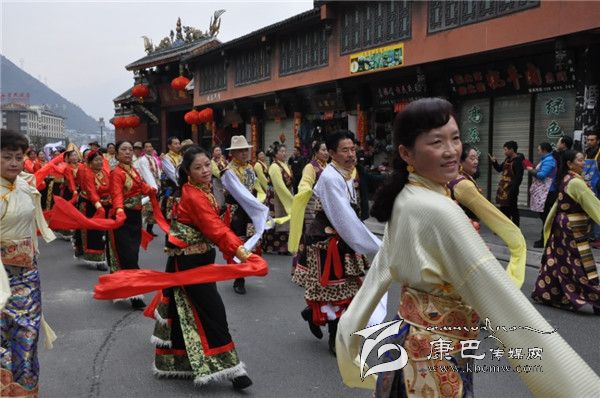 由瀘定縣弦子隊(duì)、金甘孜、色達(dá)協(xié)會(huì)、康定駐瀘協(xié)會(huì)組成的藏族方隊(duì);卡迪伲拉、北段社區(qū)、夕陽(yáng)紅、瀘橋鎮(zhèn)演出隊(duì)組成的彝族方隊(duì);企業(yè)協(xié)會(huì)和教師協(xié)會(huì)組成的扇子方隊(duì);巾幗腰鼓隊(duì)和南段社區(qū)瀘園快樂隊(duì)組成的鑼鼓方隊(duì)等演出人員穿上節(jié)日的盛裝,與全縣人民喜迎新春。