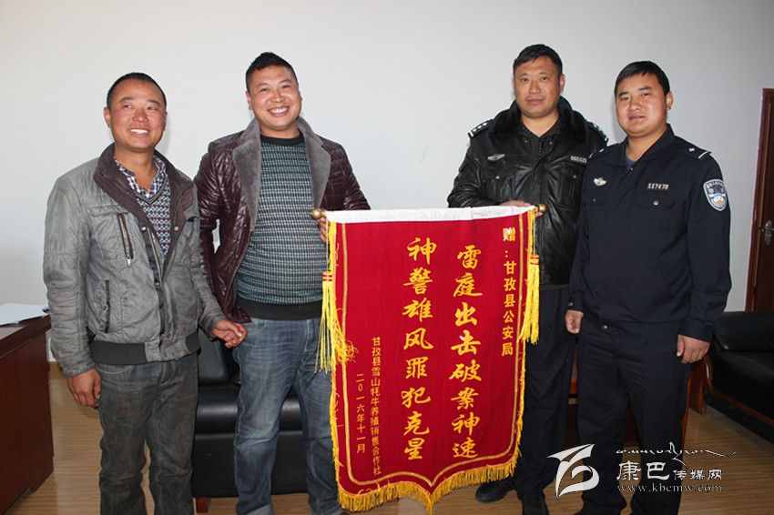 本網(wǎng)訊(余應(yīng)瓊 文/圖)11月11日,甘孜縣雪山牦牛養(yǎng)殖銷售合作社負(fù)責(zé)人鄭萬(wàn)強(qiáng)將一面繡有“雷霆出擊破案神速 神警雄風(fēng)罪犯克星”的錦旗送到縣公安局,表達(dá)對(duì)公安干警迅速破案,幫助貧困群眾挽回經(jīng)濟(jì)損失的感激之情。