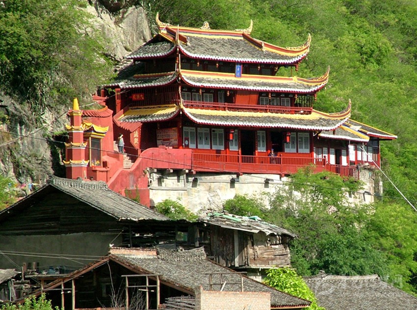 觀音閣建于清康熙43年(公元1704年),修建瀘定橋時由康熙帝賜名“觀音閣”。觀音閣居高臨下,在飛奪瀘定橋戰(zhàn)役時曾作為紅軍炮兵和機槍陣地,正是在這里的火力掩護下,紅軍的22位勇士從13根鐵索上奮勇爬過,粉碎了蔣介石讓紅軍“成為第二個石達開”的夢想。