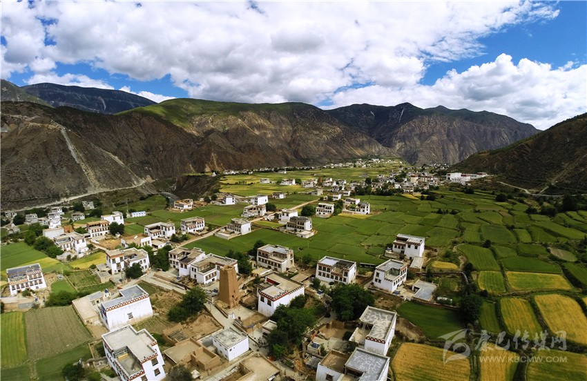 筆者來到青麥鄉(xiāng)木差村,彎彎曲曲的繞村路,沿著一棟棟獨具高原特色的藏族新居蜿蜒,塊塊農(nóng)田如翡翠般點綴在白色藏房之間,好一幅“村中田、田中村”的美景。