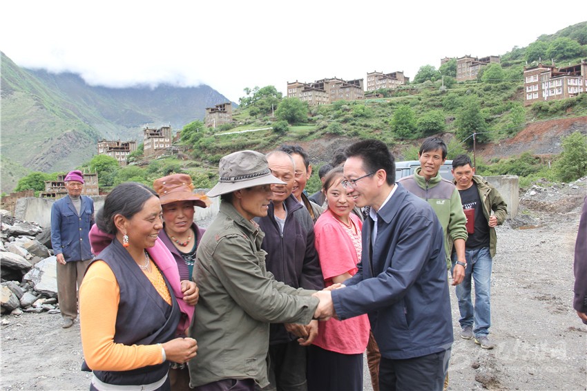 縣委副書(shū)記、縣長(zhǎng)楊國(guó)清在協(xié)德鄉(xiāng)地震災(zāi)區(qū)調(diào)研災(zāi)后重建。