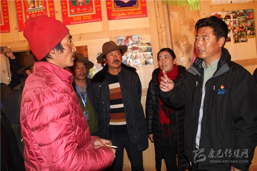 理塘縣委書(shū)記格勒多吉(右)與村民探討如何脫貧。