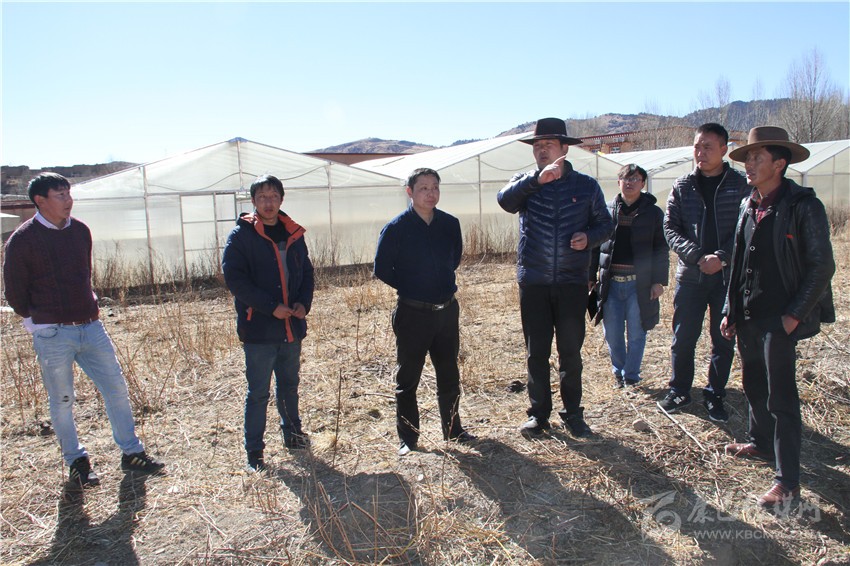 理塘縣委副書(shū)記、縣政府縣長(zhǎng)鄭顯峰(左四)調(diào)研產(chǎn)業(yè)扶貧。