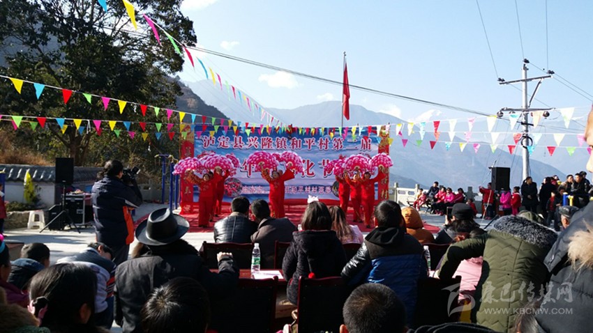 鼓聲喧天、歌聲飛揚,現(xiàn)場到處洋溢著濃濃的節(jié)日氛圍。浩浩蕩蕩的隊伍也引來了不少村民和游客們的關注。特別是隊伍中幾個唱山歌的村民獨特的腔調(diào)和唱詞盡展和平村山歌的特色。和平村每到冬月以后,村民家家戶戶便開始殺年豬,相互串門,吃年豬宴,這一習俗已傳承百年,在和平村村民的心中,年豬文化節(jié)是一個慶祝豐收的節(jié)日。上午十點半,游行隊伍來到了和平村村級活動室,“豬王”被放在了舞臺中間,焚香祈福后,當?shù)卮迕裼幂d歌載舞的方式共慶這一節(jié)日的成功舉辦。村民們自編自演的舞蹈《祖國您好》《喜慶臨門》《紅梅贊》,現(xiàn)場表演唱山歌打草鞋,每一支舞,每一首歌都傳遞著村民們對黨對祖國對新生活的無限熱愛。