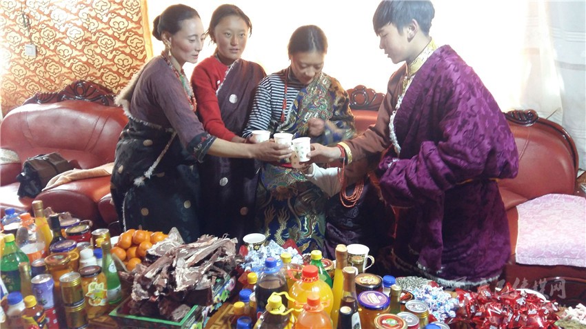 根秋卓瑪一家是俄多瑪鄉(xiāng)的村民,初一一大早,根秋卓瑪就穿上節(jié)日的盛裝?!敖裉煳覀円涯曦洈[放出來,等親戚朋友祈?;貋?,我們一家就會圍坐在一起,拉著家常、吃著美食、唱著山歌,高高興興歡度藏歷新年?!备镒楷斦f。