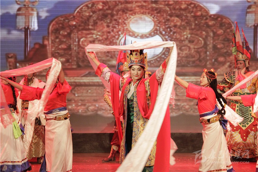 演出于晚8點正式開始,演員們的傾情表演,為觀眾送上了一場格薩爾文化的藝術(shù)盛宴。臺上動聽的歌聲、悠揚的旋律、精彩豐富的劇情吸引著觀眾的目光。臺下觀眾熱情高漲,掌聲不斷。