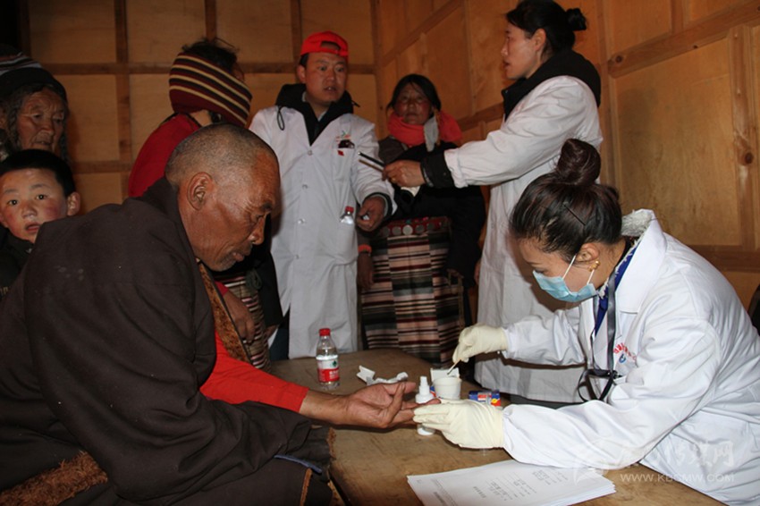 本網(wǎng)訊(葉強(qiáng)平)4月11日,理塘縣衛(wèi)計局組織19名醫(yī)務(wù)人員,深入離縣城60多公里、海拔4200多米的村戈鄉(xiāng)拖仁村,為90多名牧民群眾進(jìn)行了體重、血壓、B超、心電圖、婦女病篩查等健康檢查,還為群眾建立了健康檔案。圖為醫(yī)務(wù)人員在為牧民群眾測血糖。