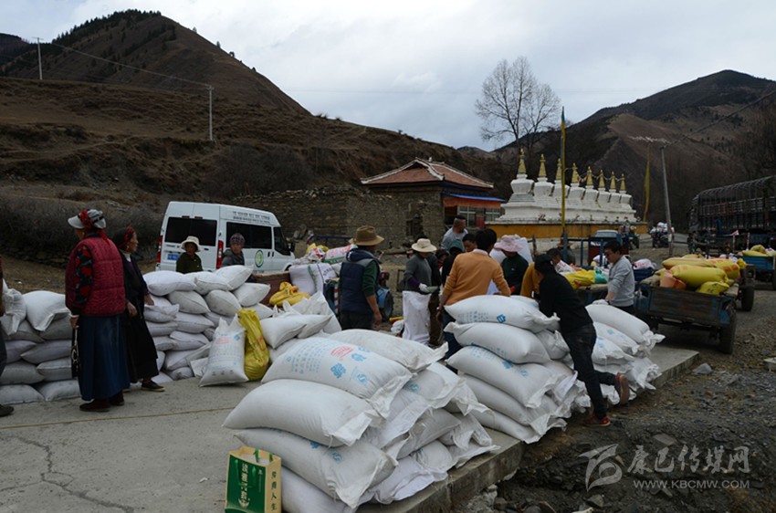 康定市藏家人菌類生產(chǎn)加工農(nóng)民專業(yè)合作社在昌木村(貧困村)收購(gòu)黑青稞。