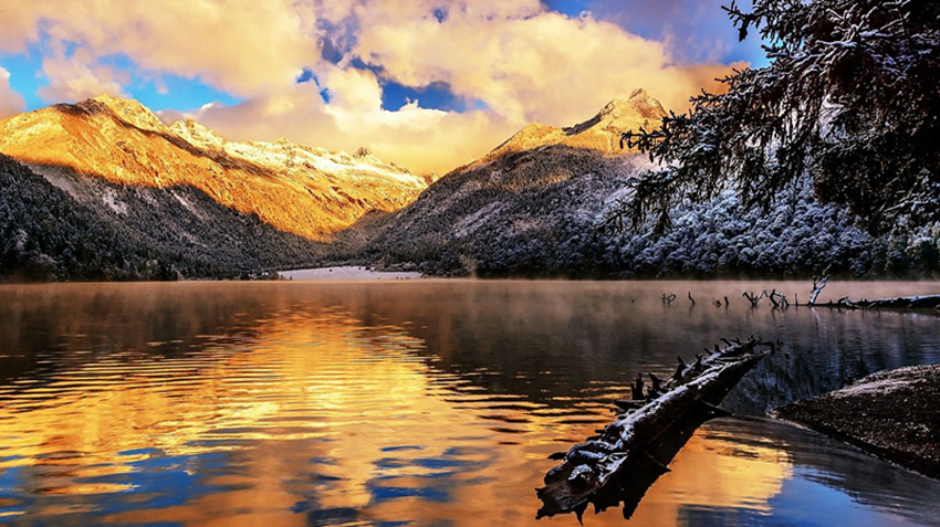 十二仙女峰峰巒秀麗,形如仙女婷婷玉立一側(cè),與伍須海遙相輝映,每當晨曦初露,薄霧輕泛,湖面一片蒸騰,人們稱“仙女早浴”;夕陽西下,十二仙女峰倒映于湖中,如入仙境,被人們稱為“仙女回宮”。湖泊周圍有天生橋、牛鼻洞、瀑布、巨大古冰川漂礫石等許多大自然奇觀。這里,民風民俗古樸,藏寨建筑古老,還有很多傳說和神話故事。