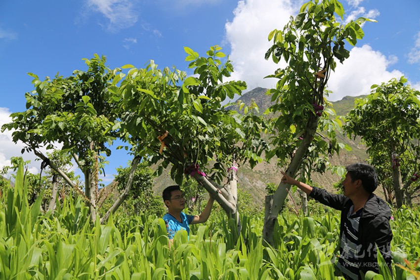 “一畝地最多栽種25棵,過密了只有數量沒有質量;老品種要嫁接新品種,不改良沒質量沒產量。”8月23日,巴塘縣環(huán)林局總工程師肖慶喜正在該村檢查去年進行嫁接改良的核桃苗。