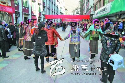 元旦前夕,丹巴縣為豐富城鄉(xiāng)居民的文化生活,在縣城步行街開展歡慶元旦佳節(jié)群眾文藝活動,丹巴縣嘉絨鍋莊協(xié)會成員和廣大群眾共同跳起歡樂的鍋莊,唱響了文化惠民的主旋律。圖為活動現(xiàn)場。 孟剛 攝影報(bào)道