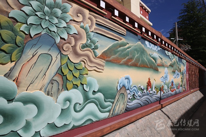 當筆者一行走在巴塘縣城,墻體繪畫上“巴塘八景”躍然于上,“巴山積雪”“柳林較射”“桃園賞花”“板橋垂釣”“古桑抱石”“溫泉沐浴”“暖石回陽”“老柳夾槐”色彩豐富、構(gòu)思精巧,平淡無奇的墻面因為一幅幅鮮活的繪畫變得生活,一面墻一幅畫一個故事。街頭巷尾,十字路口的“大鵬蓮花燈”“九眼天珠燈”“走馬燈”高高懸掛展示巴塘風貌。以“茶馬古道”為主題打造的“最美古鎮(zhèn)”,悠悠古韻講巴塘故事,古色古香顯巴塘韻味……