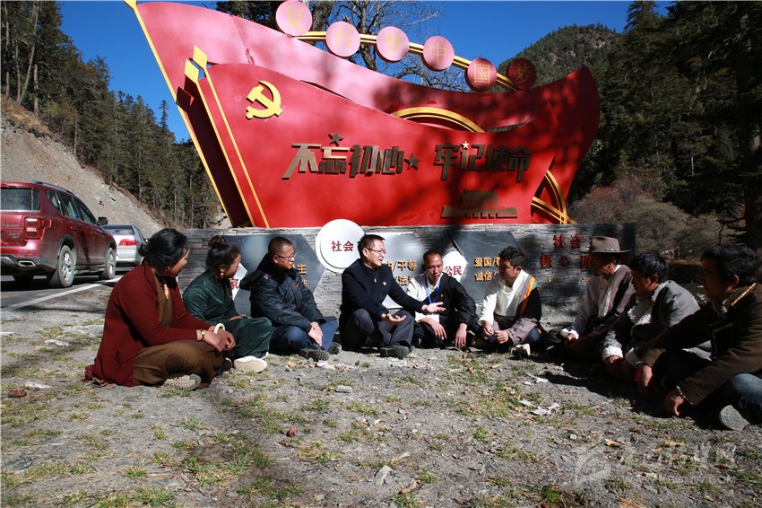 11月20日,記者乘坐的采訪車從稻城亞丁景區(qū)入口方向拐了個彎,沿著平坦的柏油路前行了26公里,木拉鄉(xiāng)麻格同村便映入眼簾,一塊黨旗造型的文化墻上寫著“不忘初心、牢記使命”幾個大字,墻體下方刻有社會主義核心價值觀內(nèi)容,讓人眼前一亮。幾個村民圍坐在一起,商量著什么。記者停車詢問得知,四川旅投集團駐村干部王雷正在和村“兩委”以及部分村民代表,商議動工修建棧道,為游客開展馬幫服務(wù)的事情。
