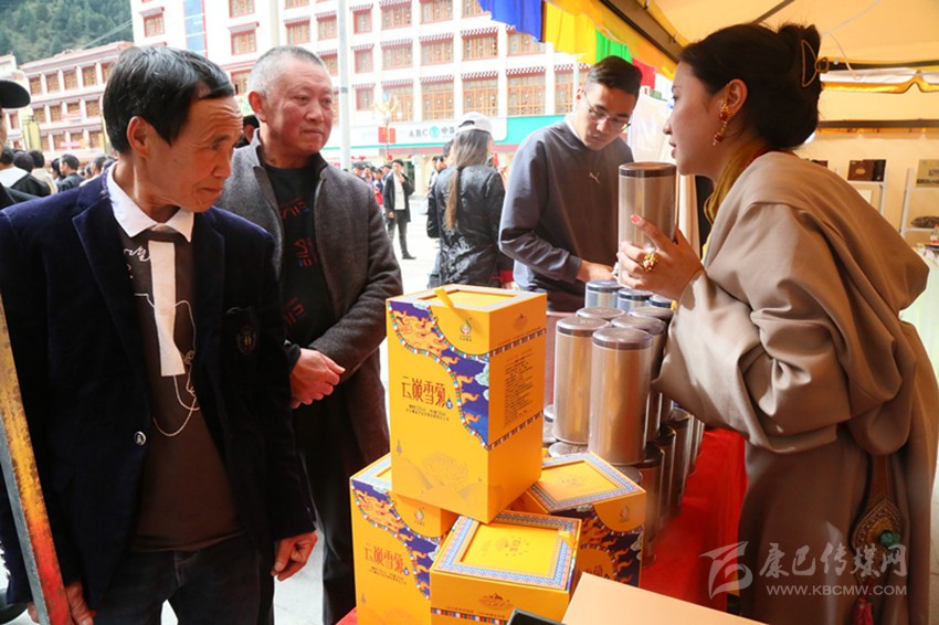 24個(gè)帳篷,井然有序地分布。既有自然天賜的蟲(chóng)草、松茸、貝母,又有高原特產(chǎn)酸奶、酥油、糌粑;既有傳統(tǒng)手工刀具、馬具、服裝,又有科學(xué)種植的蔬菜、水果、雪菊;既有傳統(tǒng)藏醫(yī)的系列產(chǎn)品展示,又有專(zhuān)業(yè)學(xué)院援建的產(chǎn)學(xué)研成果的“露臉”,整個(gè)展銷(xiāo)會(huì)琳瑯滿目,讓人目不暇接。