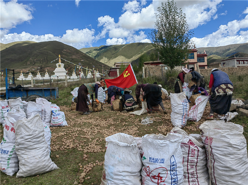 “現(xiàn)在黨的政策好啊,我們的種子都是國家發(fā)的,還有農(nóng)技員指導(dǎo)種植,現(xiàn)在土豆畝產(chǎn)基本都在4000斤左右,相比傳統(tǒng)自己留種,產(chǎn)量大幅提升。以前我們都是自給自足,現(xiàn)在留夠口糧還能將多余的土豆拿到市場上銷售。我們木拉的土豆口感、品質(zhì)都是最好,在市場上很暢銷,價格都在2元一斤以上,共產(chǎn)黨嘎真切(藏語:謝謝的意思)?!笨粗鴿M滿一袋的土豆,村民丁真降措擦了擦額頭的汗高興地說。