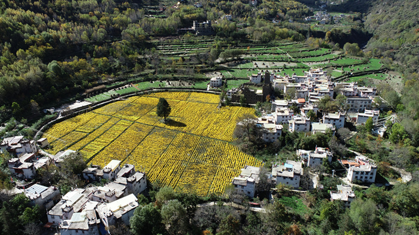 本網(wǎng)訊 金秋時(shí)節(jié),在丹巴縣巴底鎮(zhèn)邛山村的一片田地里,當(dāng)?shù)剞r(nóng)戶正在金絲皇菊基地里采摘菊花。35畝金絲皇菊迎風(fēng)綻放,成為當(dāng)?shù)孛利惖娘L(fēng)景。今年,該村采取“公司+合作社+農(nóng)戶”因地制宜種植金絲皇菊,讓群眾在家門(mén)口就業(yè),菊花種植產(chǎn)業(yè)打造了綠色生態(tài)美麗鄉(xiāng)村,吸引了不少游客前來(lái)游玩,成為當(dāng)?shù)厝罕娭赂辉鍪盏男侣纷印?/span>降初澤郎 吉靜 洛桑達(dá)瓦/文