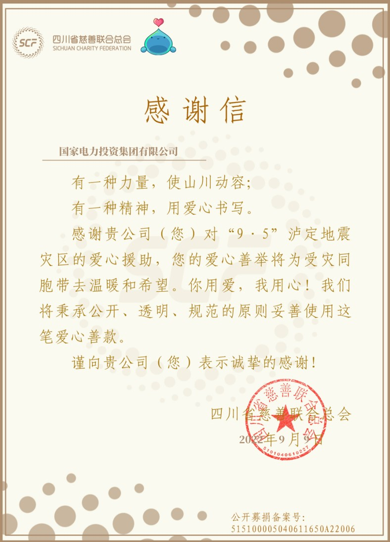 2022年9月5日12時52分,瀘定6.8級地震發(fā)生后,國家電投集團(tuán)立刻向?yàn)?zāi)區(qū)捐款1000萬元,全力支援災(zāi)區(qū)救助和災(zāi)后重建,幫助災(zāi)區(qū)人民共渡難關(guān)。面對災(zāi)情,國家電投甘孜興川公司迅速啟動地震應(yīng)急響應(yīng),做好人員、設(shè)備詳細(xì)排查,防范塌方、泥石流等次生災(zāi)害,保持安全生產(chǎn)穩(wěn)定,千方百計保安全、保供電,充分發(fā)揮央企能源供應(yīng)“穩(wěn)定器”和“壓艙石”作用,助力災(zāi)區(qū)盡快恢復(fù)生產(chǎn)生活秩序。統(tǒng)籌調(diào)度各方力量,克服疫情和余震影響,緊急采購災(zāi)區(qū)急需的發(fā)電機(jī)、電筒等設(shè)備第一時間送達(dá)災(zāi)區(qū),支援應(yīng)急。在得知瀘定縣得妥鎮(zhèn)電力系統(tǒng)受災(zāi)嚴(yán)重急需救援力量后,公司迅速成立抗震救災(zāi)保供黨員先鋒隊,從正在緊張施工的興川實(shí)證光伏電站抽調(diào)精銳力量26人奔襲700公里,抵達(dá)瀘定縣得妥鎮(zhèn),緊急馳援地方搶險救災(zāi)工作,拆除100多戶危房電源,恢復(fù)2個行政村460戶村民安全用電,贏得當(dāng)?shù)卣蜕鐣鹘缫恢潞迷u。