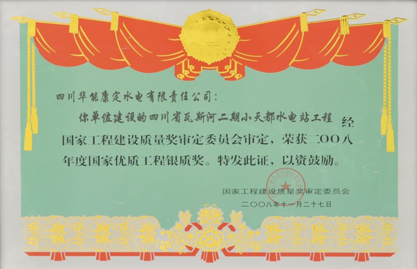 冷竹關水電站和小天都電站均獲得四川省建設工程最高質量獎“天府杯”金獎,接受了朱镕基總理、第十一世班禪等黨和國家領導人多次視察。2006年11月,“康瀘電網”與小天都電站35千伏系統并網成功,結束了全省最后一個地市州未并入主網而“孤網運行”的歷史。小天都電站還是四川省首個獲得“國家優(yōu)質工程獎”的水電站。