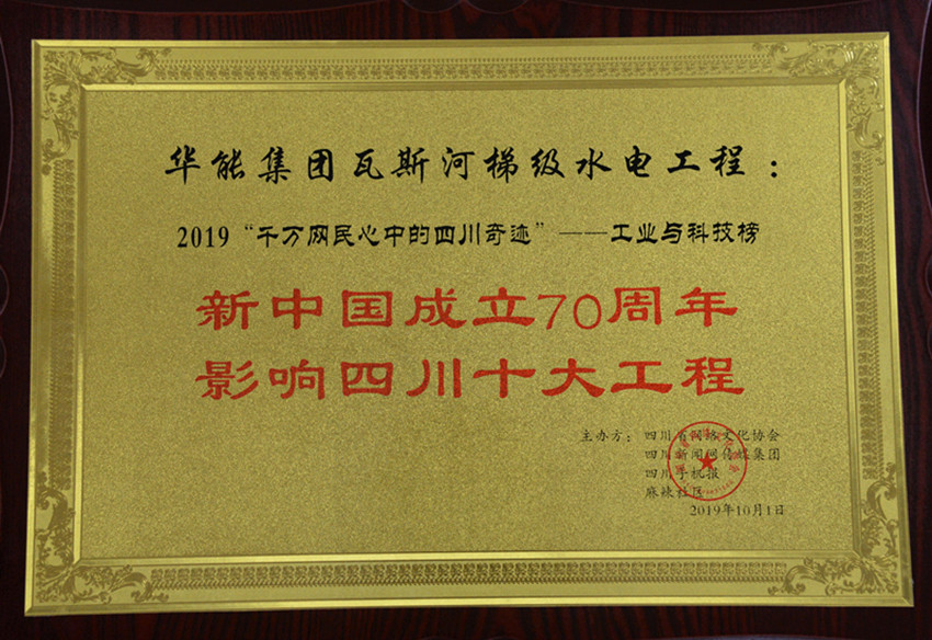 作為在國內產生巨大影響的四川境內的標志性工程,2019年10月,瓦斯河梯級水電工程成功入選“新中國成立70周年影響四川十大工程”工業(yè)與科技榜。