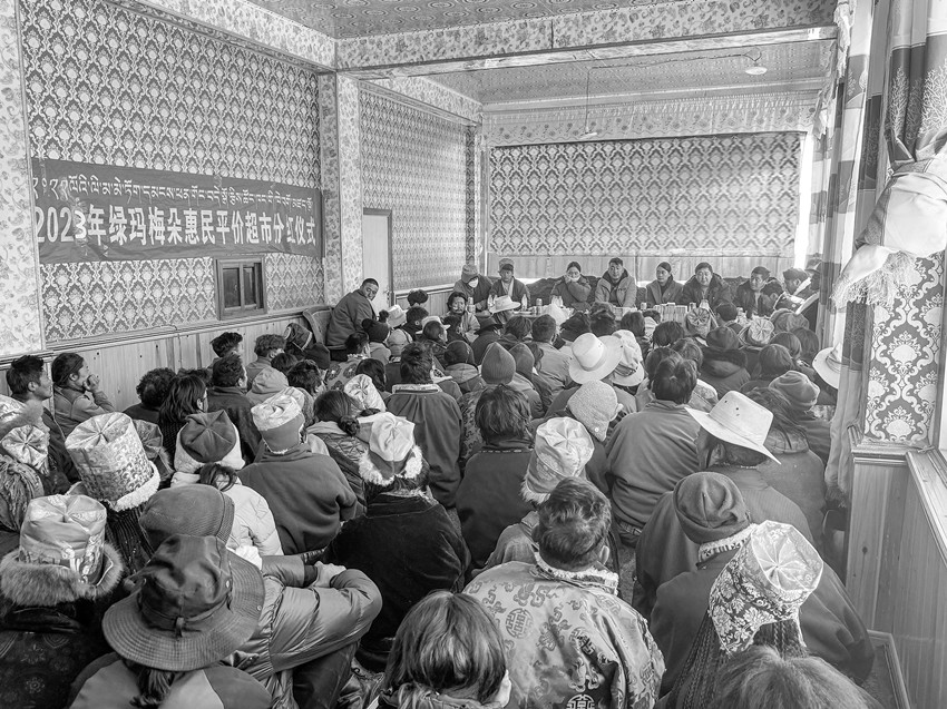 本網(wǎng)訊 “今天我家領(lǐng)到17000余元,集體有收益、牧民有分紅,這給我們帶來(lái)了實(shí)實(shí)在在的利益,讓我們切身感受到黨委、政府對(duì)我們的用心、用情,希望村集體經(jīng)濟(jì)發(fā)展得越來(lái)越好?!苯眨诶硖量h曲登鄉(xiāng)渾查村集體經(jīng)濟(jì)綠瑪梅朵惠民平價(jià)超市第6次分紅儀式上,村民扎西格乃拿著分紅款,高興地合不攏嘴。