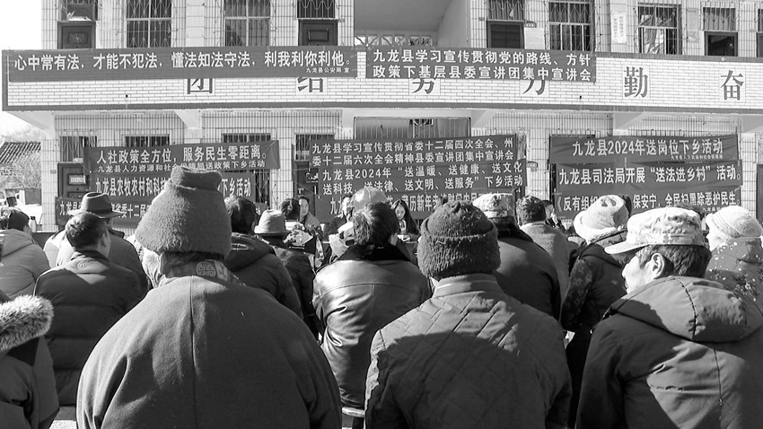 本網(wǎng)訊 1月12日至14日,九龍縣委宣傳部組織縣司法局、縣農(nóng)牧農(nóng)村和科技局、縣衛(wèi)生健康局等部門,聯(lián)合開展了學習宣傳貫徹習近平新時代中國特色社會主義思想、省委十二屆四次全會精神、州委十二屆六次全會精神宣講暨“七下鄉(xiāng)”暖冬行動。