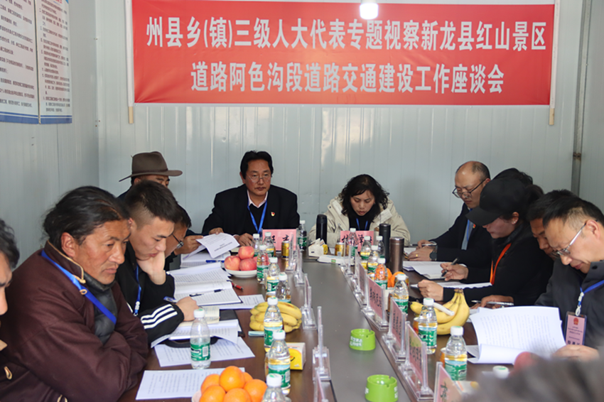 “設(shè)計車流承載量有多大,什么時候能夠完全竣工?”“要件都辦齊沒有?資金到位情況咋樣?”“全縣群眾對這條路充滿期望和關(guān)注,一定要加快進(jìn)度、嚴(yán)格監(jiān)管,保證安全、質(zhì)量和環(huán)保;政府要統(tǒng)籌推動,相關(guān)部門要各司其職,確保把這條路建成惠民路、發(fā)展路、生態(tài)路、廉潔路……”2023年4月7日,新龍縣紅山景區(qū)道路阿色溝段建設(shè)施工現(xiàn)場,二十多名州、縣、鄉(xiāng)人大代表一邊查看道路建設(shè)情況,一邊對縣政府分管副縣長和相關(guān)部門負(fù)責(zé)人提出問題和建議。一問一答之間,彰顯人大依法履職、服務(wù)發(fā)展的責(zé)任和擔(dān)當(dāng)。