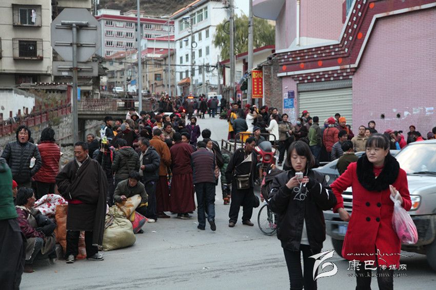 震后幾分鐘,康定市民便紛紛沖出家門,趕到城區(qū)開闊地帶。記者在將軍橋一帶看到,安雀寺外的小廣場上早已人山人海;標注有臨時避難場所的情歌廣場一帶,數(shù)以萬計的市民已經(jīng)集聚在廣場;州群藝館外的街道也成了臨時避難場所,有的市民甚至把被蓋也搬了出來;在格薩爾酒店一側(cè),通往州委黨校的街道上站滿了焦急的人群;在城區(qū)最開闊的北門廣場,更是被人流擠得水泄不通。
