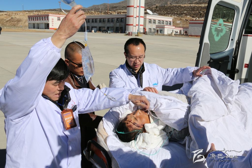 當(dāng)日上午8時40分,州人民醫(yī)院醫(yī)護(hù)人員對該名傷員進(jìn)行了轉(zhuǎn)運前的最后護(hù)理。隨后,救護(hù)車在綠色通道疏導(dǎo)下,直奔海拔4238米康定機(jī)場,在轉(zhuǎn)運的過程中,考慮到當(dāng)?shù)馗吆0蔚那闆r,救護(hù)車上安裝了供氧裝置,醫(yī)護(hù)人員全程陪護(hù),將送他到華西醫(yī)院救治。