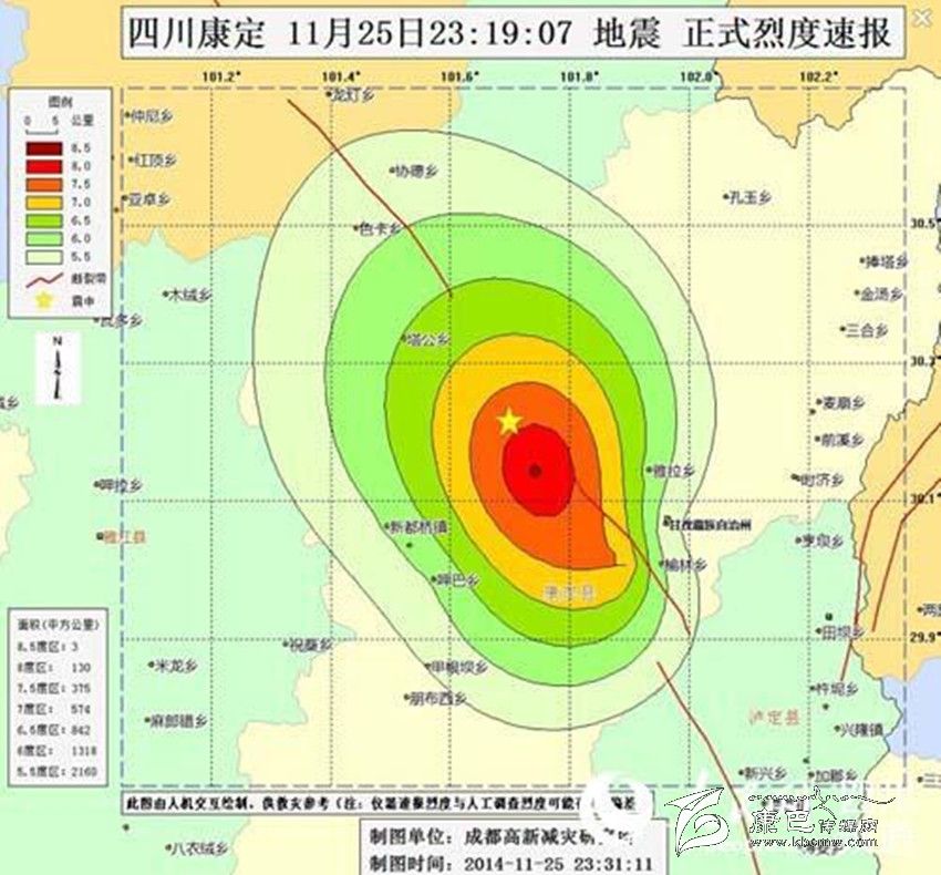 據(jù)人民網(wǎng)成都11月26日報(bào)道 記者剛剛從成都高新減災(zāi)研究所了解到,11月25日23時(shí)19分在四川省甘孜藏族自治州康定縣(北緯30.2度,東經(jīng)101.7度)發(fā)生5.8級(jí)地震,此次地震系康定6.3級(jí)地震的余震。