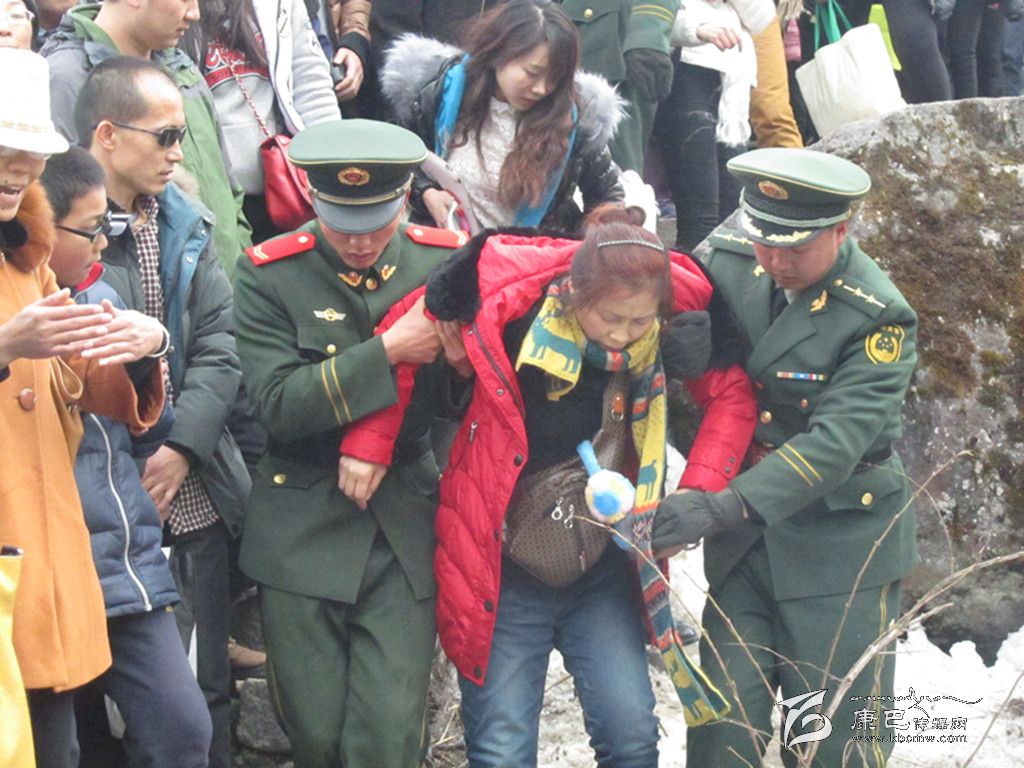 春節(jié)期間,擔(dān)負(fù)海螺溝景區(qū)執(zhí)勤官兵服務(wù)身體不適的游客。